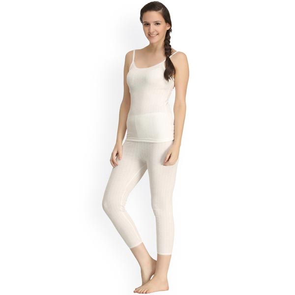 This off-white thermal set consists of a top and a pair of leggings